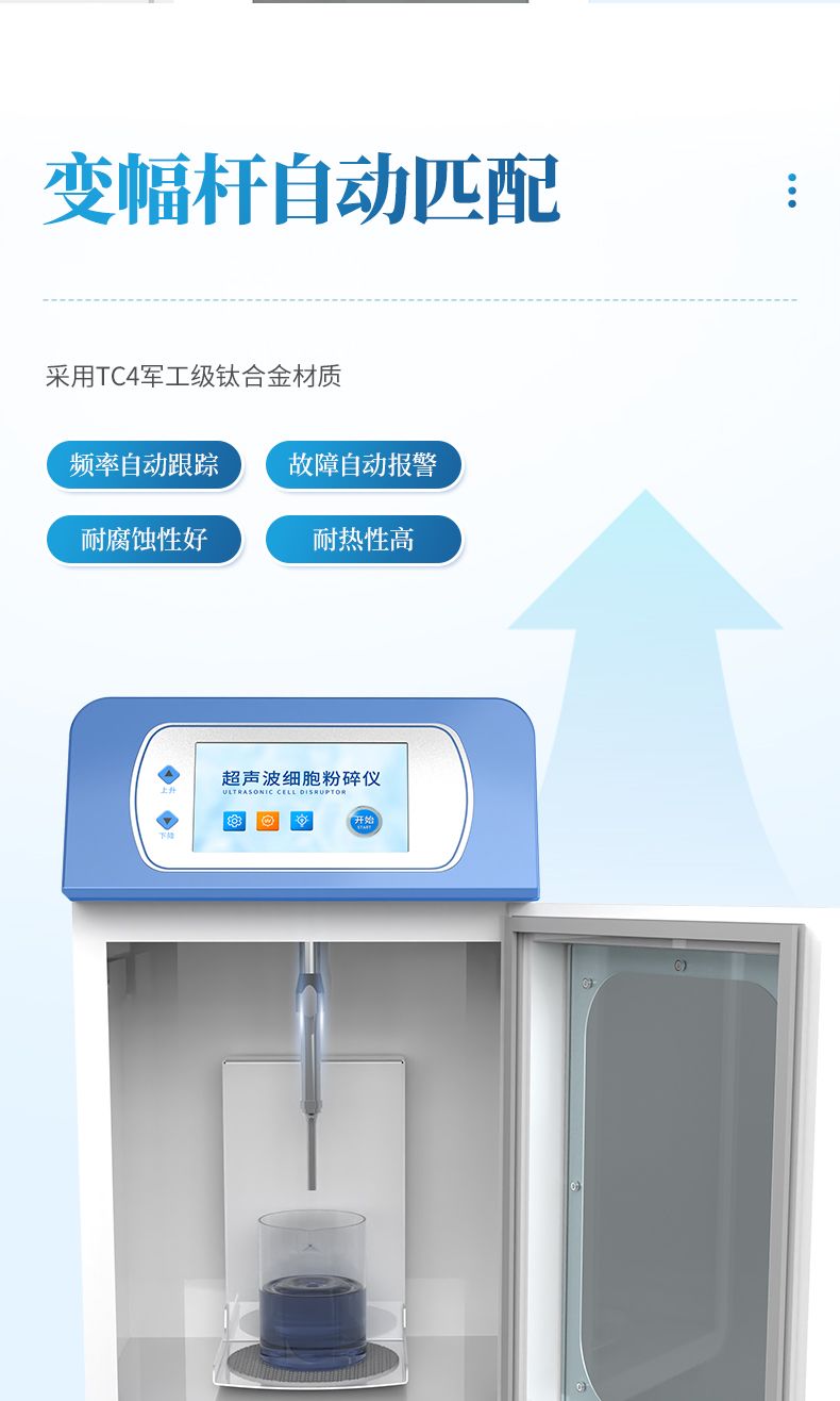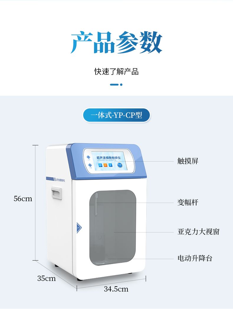 總之,超聲波粉碎機能實現提取、粉碎、乳化、勻化、懸浮液、變異、氣懸體、加速脫溶、晶化及在電子顯微鏡下配制各種生物樣本之多種功能。