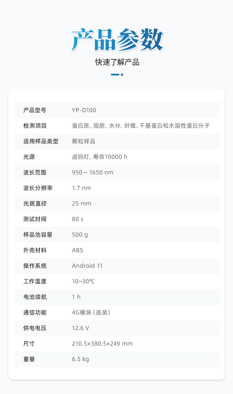 5. 檢測(cè)項(xiàng)目全:大豆中的蛋白質(zhì)、脂肪、水分、纖維、干基蛋白與水溶性蛋白;