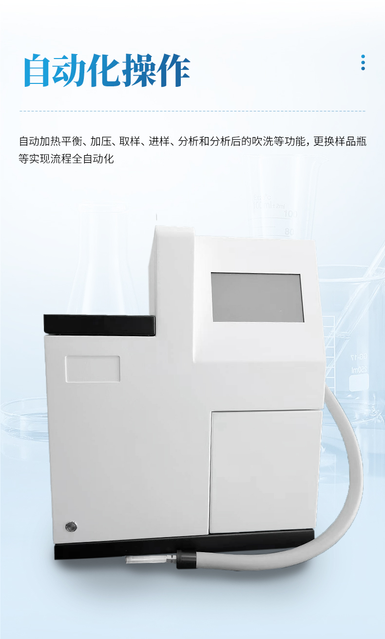 ▲全中文7寸液晶顯示,操作簡(jiǎn)單,一鍵啟動(dòng)。自動(dòng)加熱平衡、加壓、取樣、進(jìn)樣、分析和分析后的吹洗等功能,更換樣品瓶等實(shí)現(xiàn)流程全自動(dòng)化。