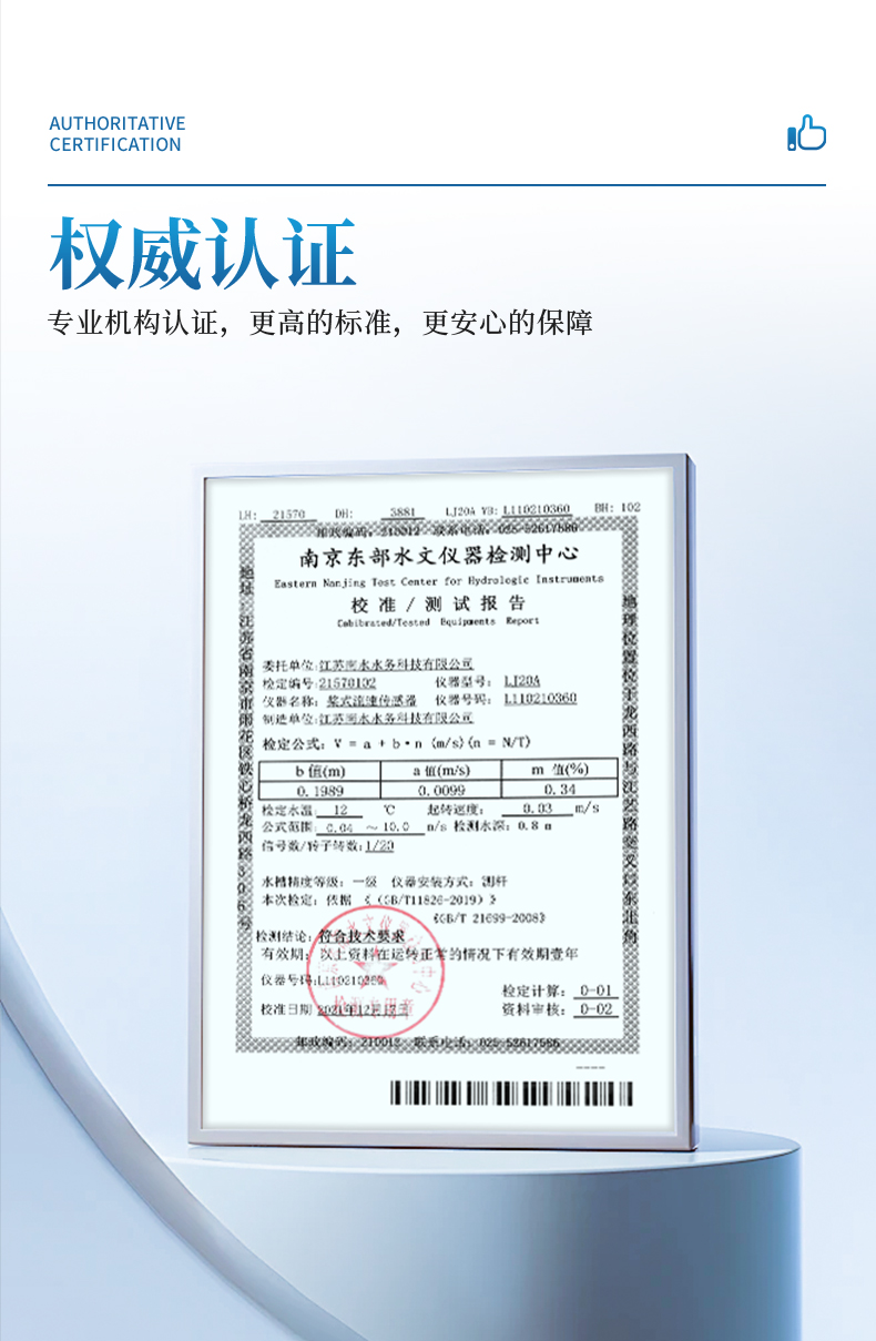 流速測(cè)量:流速儀在水力推動(dòng)下,其內(nèi)置信號(hào)裝置產(chǎn)生轉(zhuǎn)數(shù)信號(hào)。從而,可根據(jù)某個(gè)單位時(shí)段內(nèi)流速儀產(chǎn)生的信號(hào)總數(shù),由以下公式計(jì)算出流速:v=a+b*R/T(m/s)(自動(dòng)計(jì)算)