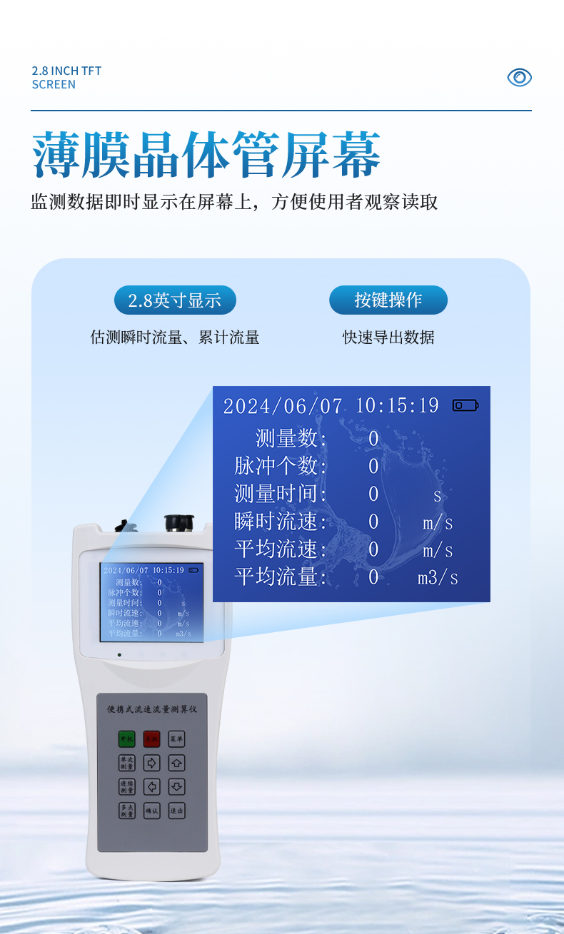 LS300-B型便攜式流速流量儀(簡稱便攜式流速儀)是專門為水文站、廠礦、環(huán)保監(jiān)測(cè)站、農(nóng)田排灌、水文地質(zhì)調(diào)查等部門在野外進(jìn)行明渠流速流量測(cè)量而研制的。