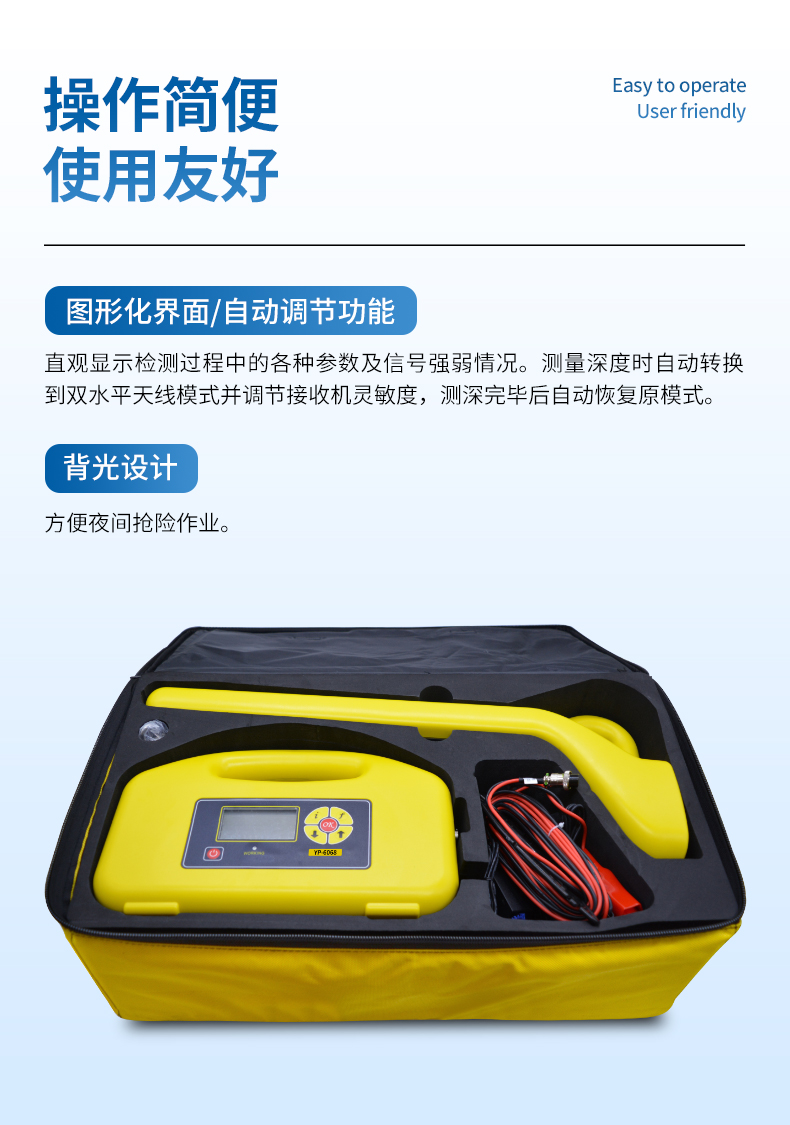 地下管線探測儀能在非開挖的情況下,對地下管道、電纜、光纜進(jìn)行精確定位和埋土深度測量,精確查找地下管道外防腐層破損點、埋地電纜故障點的位置。該儀器融合超窄帶濾波器、藍(lán)牙無線通訊、GPS定位、專業(yè)數(shù)據(jù)分析軟件自動成圖、檢測報告自動生成等最先進(jìn)技術(shù),具有超強(qiáng)抗干擾能力,精準(zhǔn)定位和測深,適用于地下各種金屬管線的探測和巡線、管線管理與維護(hù)、市政規(guī)劃建設(shè)、供電等部門的管線檢測,是管道維護(hù)單位的必備儀器之一。