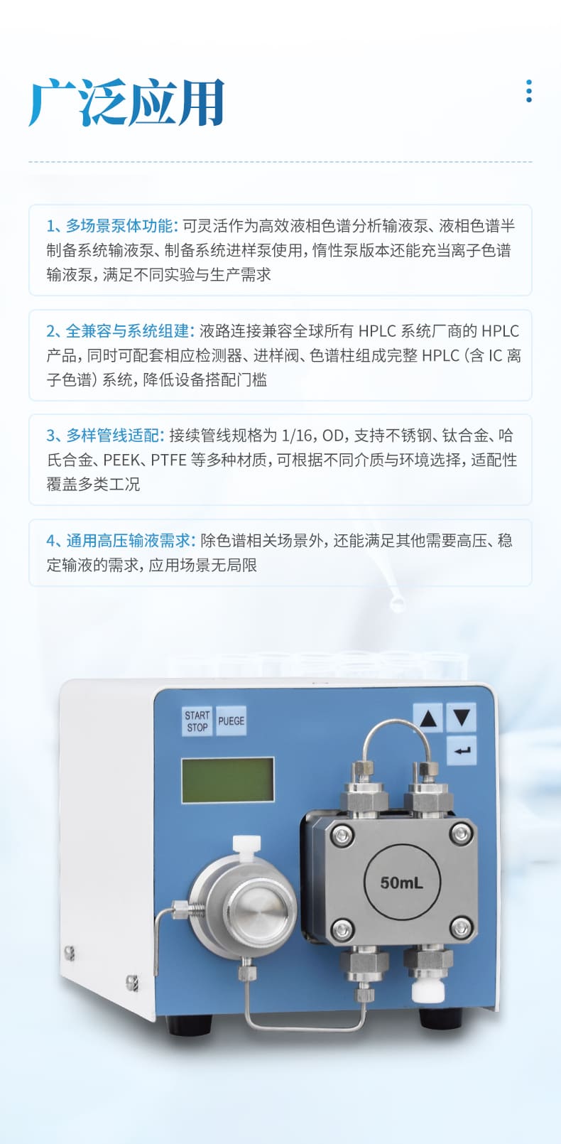 可根據(jù)需求更換泵頭(分析/半制備)