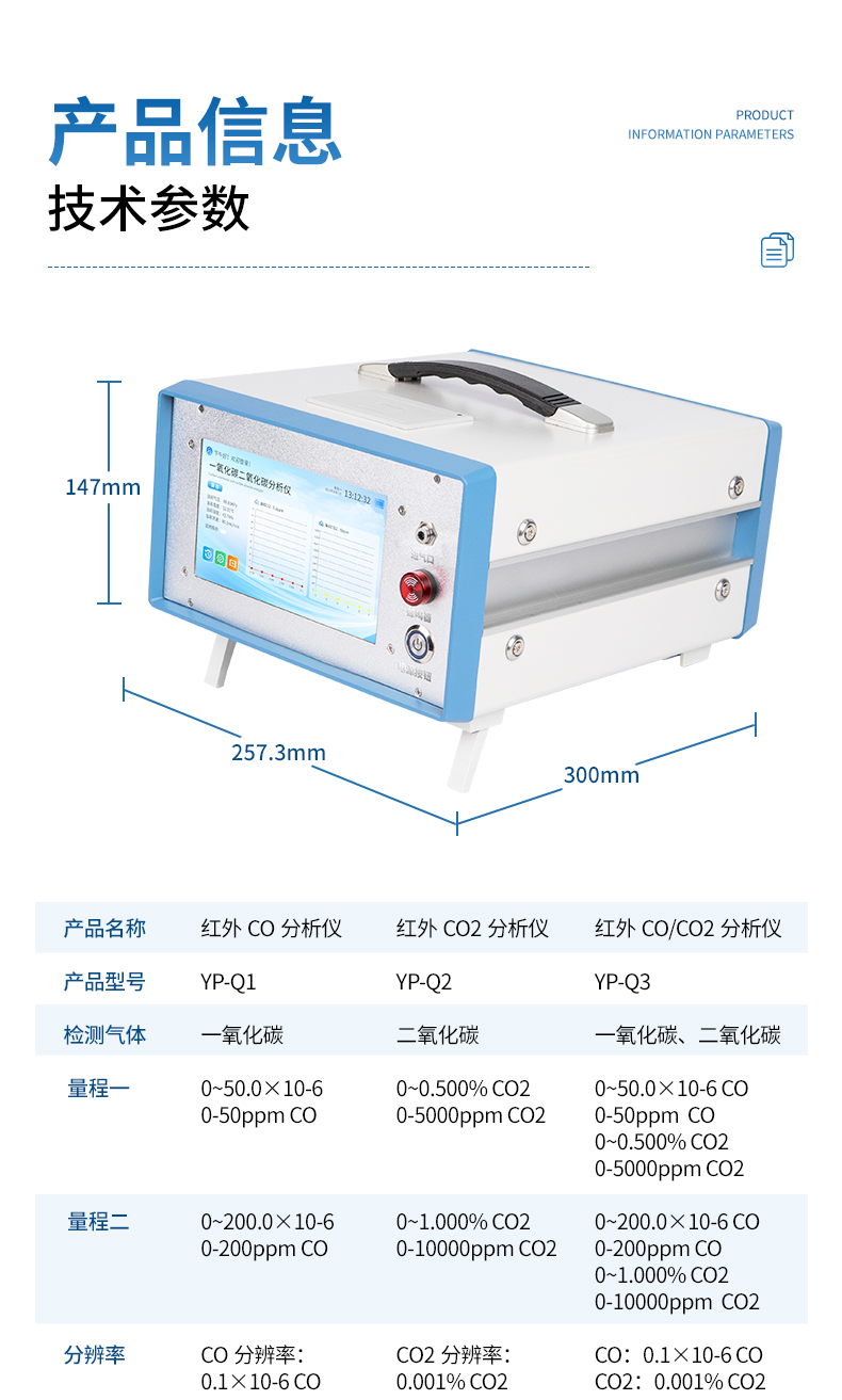 4、測(cè)量范圍:選配一, 0~0.500% CO2 (0-5000ppm CO2 )
