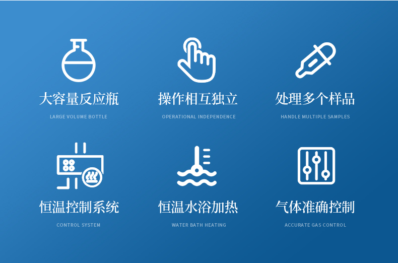 1、大容量反應(yīng)瓶,可同時處理多個樣品。