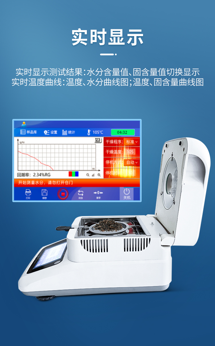 實時顯示測試結(jié)果--------------水分含量值、固含量值切換顯示