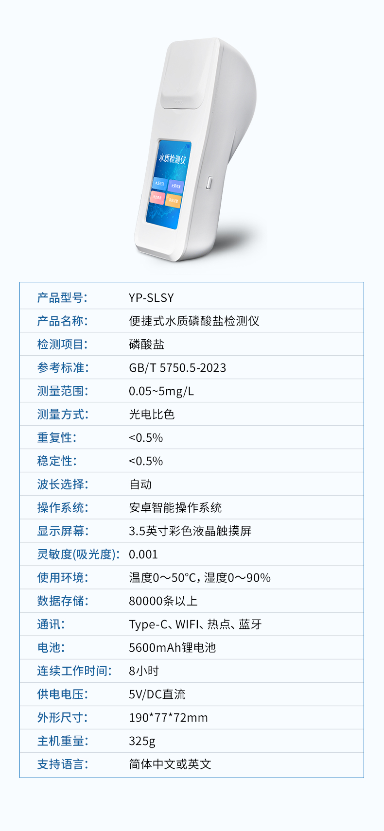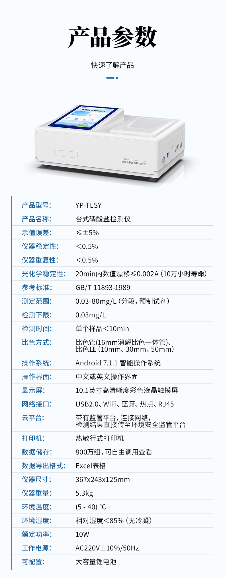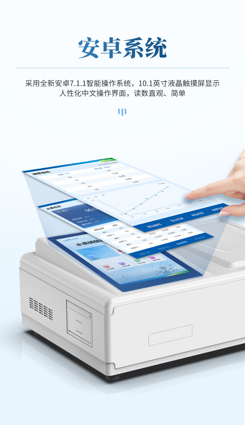 水質(zhì)磷酸鹽快速檢測儀是參考標準GB/T 11893-1989鉬酸銨分光光度法設(shè)計制造;主要檢測水質(zhì)磷酸鹽濃度指標,兼具智能數(shù)據(jù)分析功能,圖表、列表顯示數(shù)據(jù),分析一目了然;高清晰度彩色液晶觸摸顯示屏,Android智能操作系統(tǒng),中文顯示界面,中英文鍵盤,人性化操作,使用更簡單。