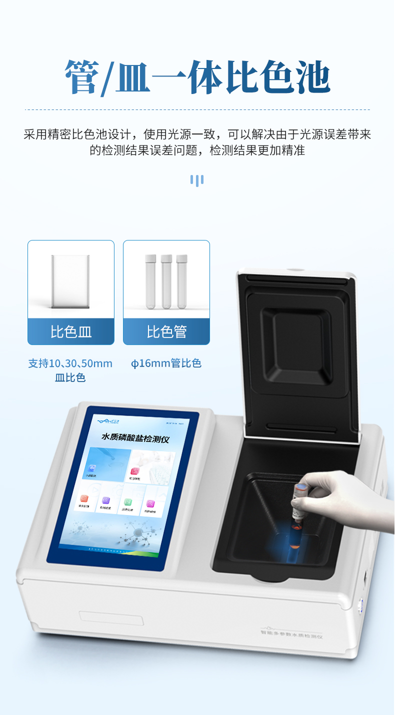 5、支持10mm、30mm、50mm皿比色和φ16mm管比色等比色方式,多元選擇,確保測量的準確性;