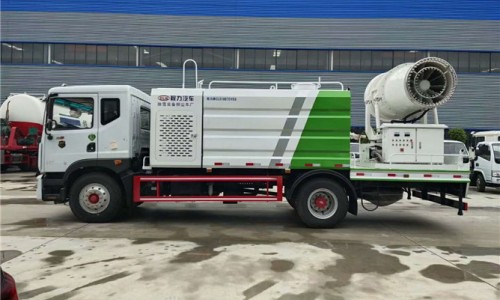 東風(fēng)D9抑塵車配備前沖、后灑、側(cè)噴(均采用6個(gè)T型球閥駕駛室自動(dòng)操作控制)高炮、加大工作平臺(tái),前置卷簾門消音發(fā)電機(jī)倉(cāng),中置加大容量方型水箱,罐體滿載容積10立方,是一款配置不錯(cuò)的環(huán)衛(wèi)車。
