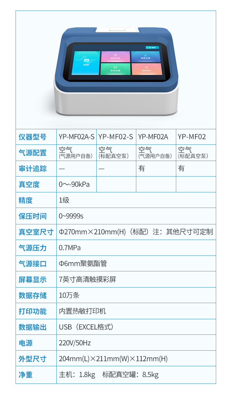 3.自動(dòng)恒壓補(bǔ)氣進(jìn)一步確保測試能夠在預(yù)設(shè)的真空條件下進(jìn)行,抽壓、保壓、補(bǔ)壓、計(jì)時(shí)、反吹全自動(dòng)化一鍵操作;