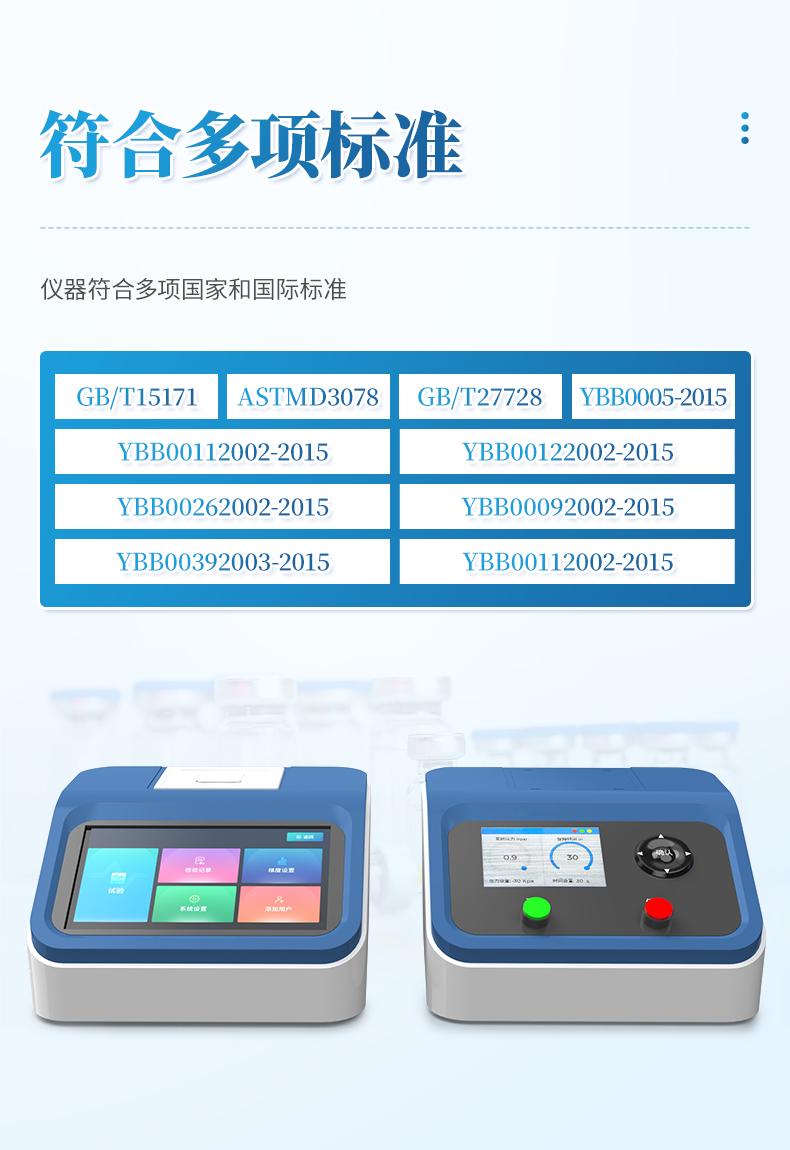 該儀器符合多項(xiàng)國家和國際標(biāo)準(zhǔn):GB/T15171、ASTMD3078、GB/T27728、YBB00112002-2015、