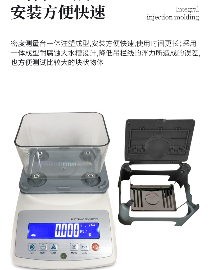 3.密度測(cè)量臺(tái)一體注塑成型,安裝方便快速,使用時(shí)間更長(zhǎng)
