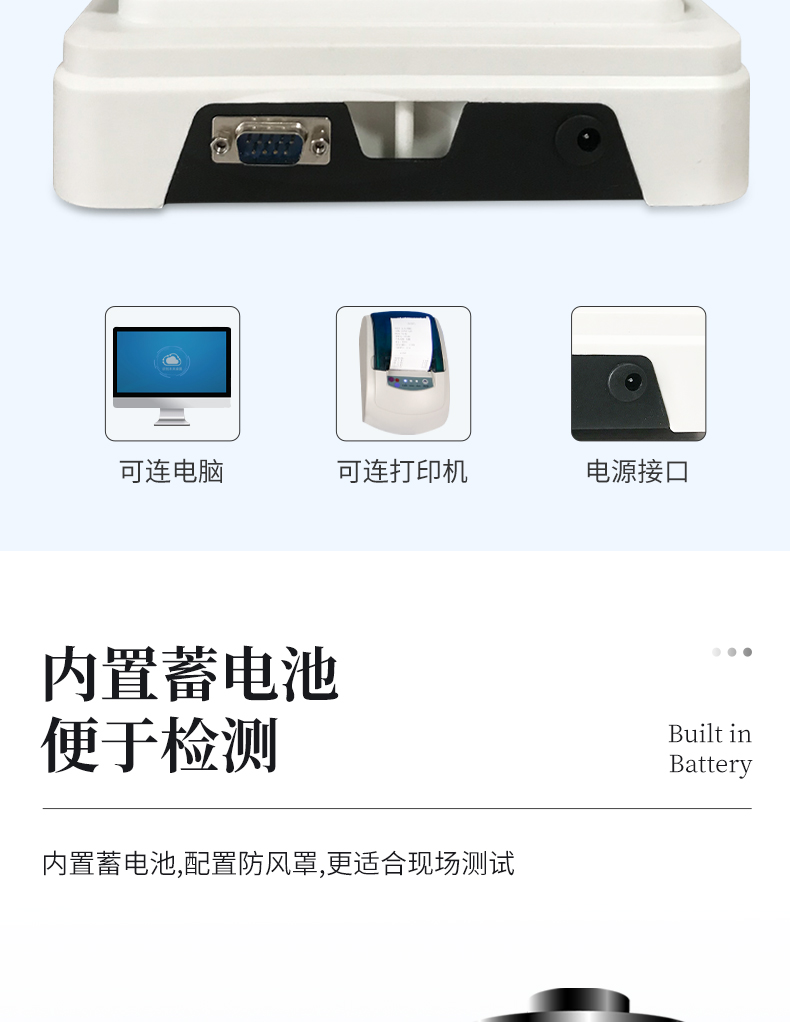 6.內(nèi)置蓄電池,配置防風(fēng)罩,更適合現(xiàn)場(chǎng)測(cè)試