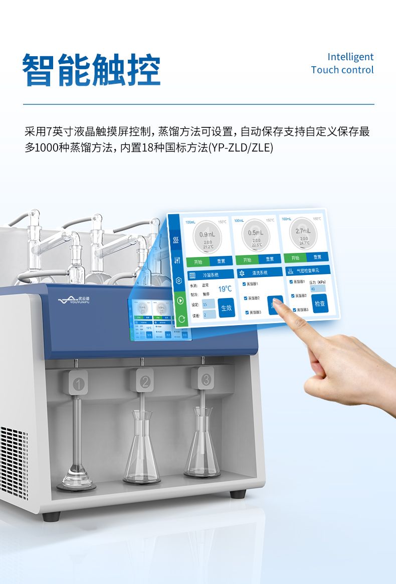 2、采用7寸液晶觸摸屏控制,蒸餾方法可設(shè)置,自動(dòng)保存,下次開機(jī)可直接使用;系統(tǒng)自帶校正蒸餾體積(重量)功能。
