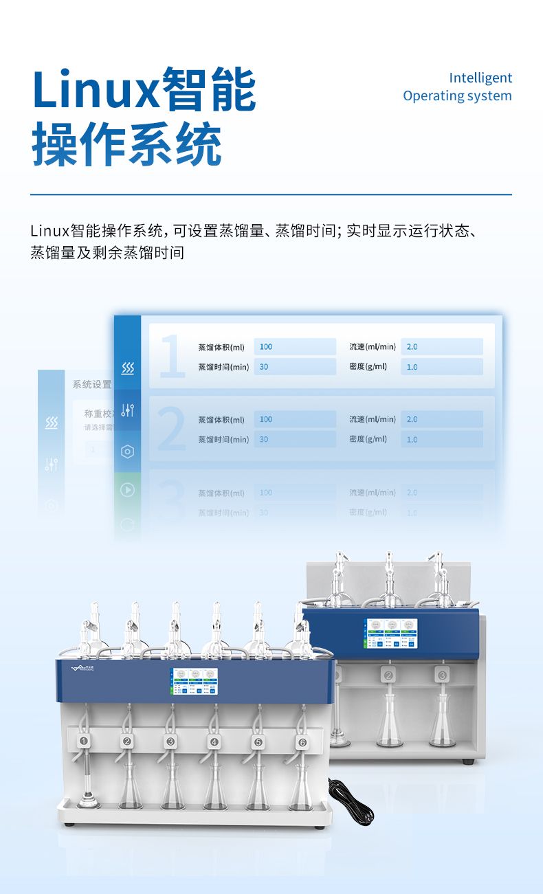 智能一體化蒸餾儀采用智能模塊化設(shè)計(jì):方法自定義設(shè)置保存/讀取、開機(jī)自動(dòng)調(diào)取使用,冷凝單元特殊定制蛇形冷凝管、智能終點(diǎn)控制防過量蒸餾、防倒吸保護(hù),防干燒保護(hù)、實(shí)現(xiàn)了智能操作簡(jiǎn)單、自動(dòng)蒸餾、美觀實(shí)用、節(jié)能降耗、節(jié)省人工的同時(shí)為用戶做樣提高效率節(jié)約人員成本開銷。