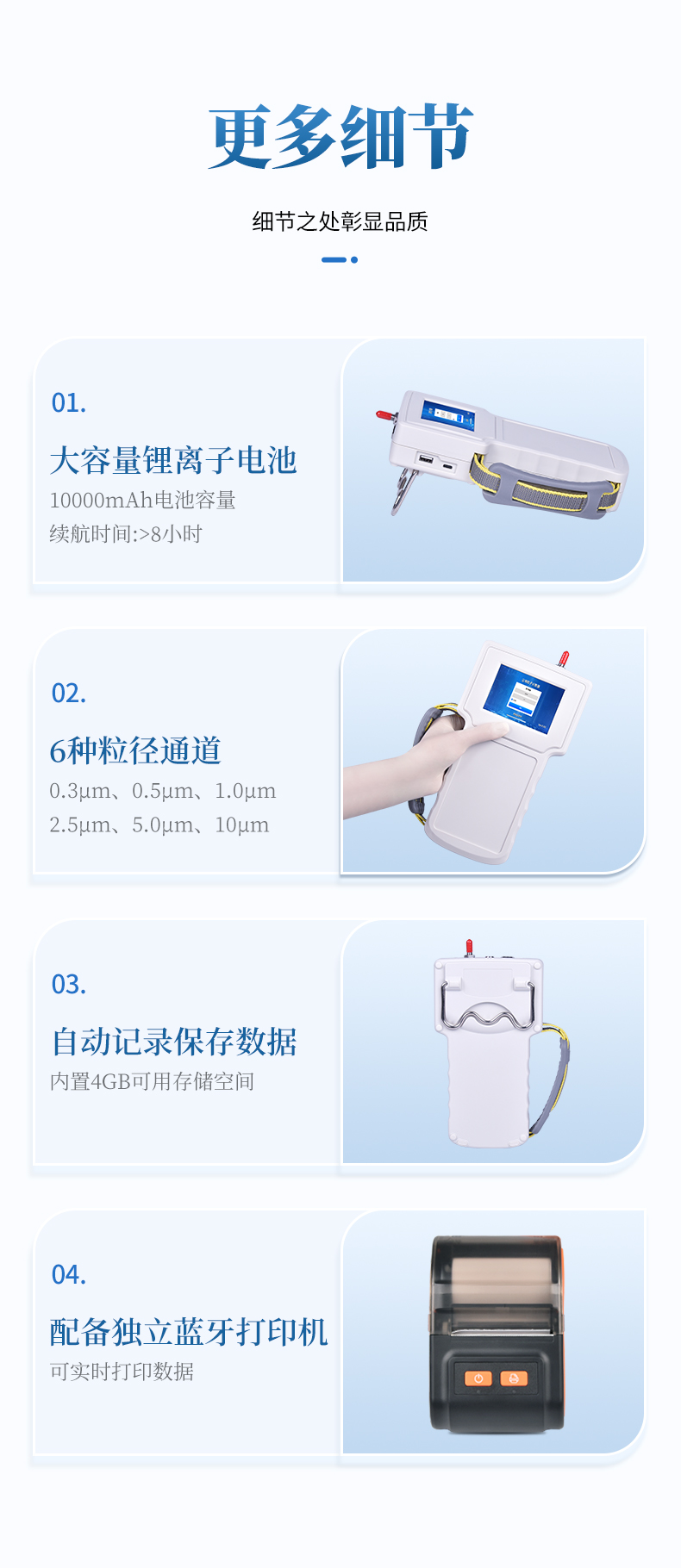 粒徑通道:0.3μm、0.5μm、1.0μm、2.5μm、5.0μm、10μm