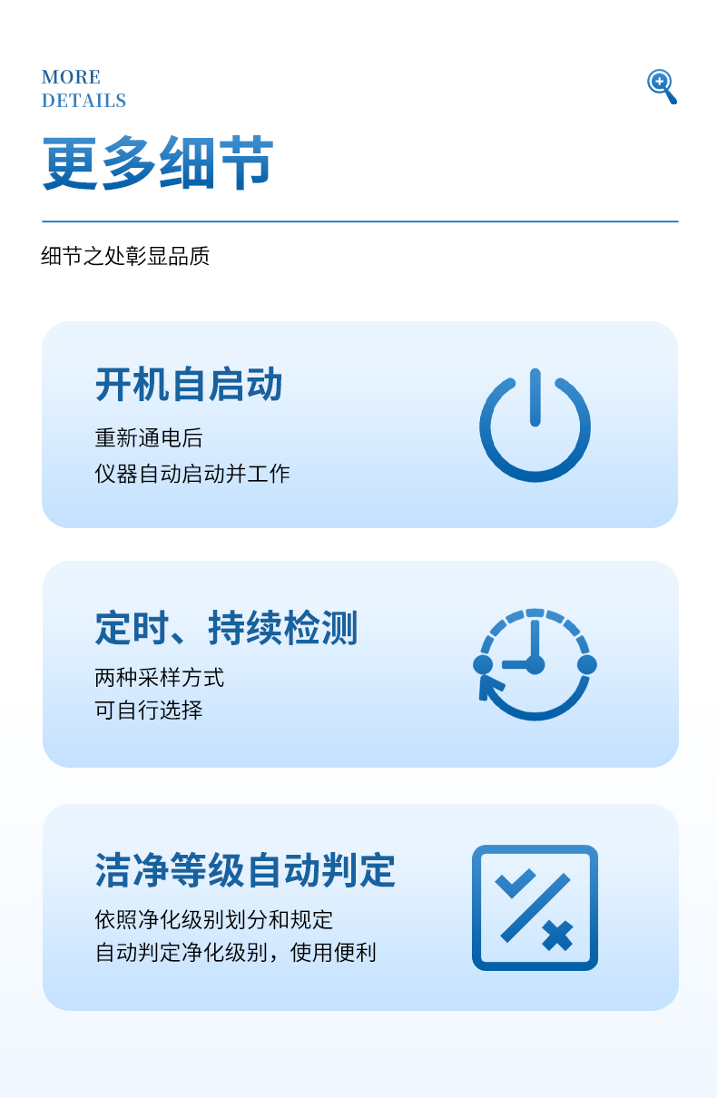 5、依照凈化級別劃分和規(guī)定,自動判定凈化級別,使用便利。