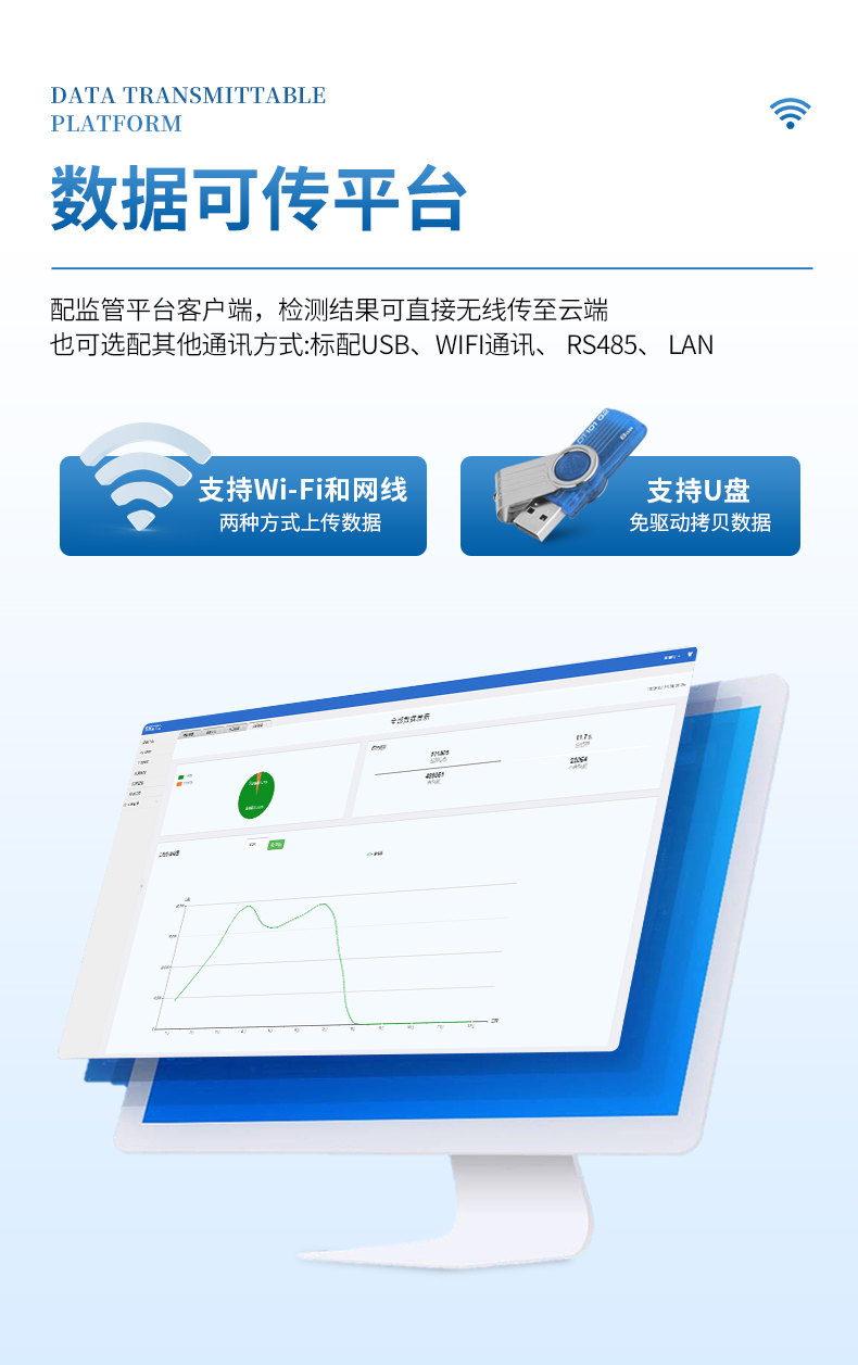 7、支持wifi、網(wǎng)線傳輸,數(shù)據(jù)可無線、有線上傳云平臺;同時支持U盤拷貝數(shù)據(jù),免驅(qū)動插拔。