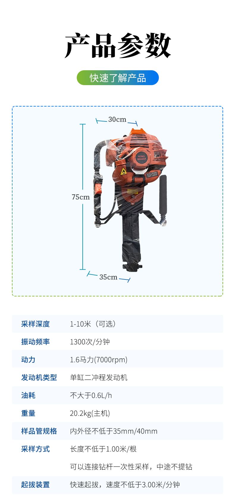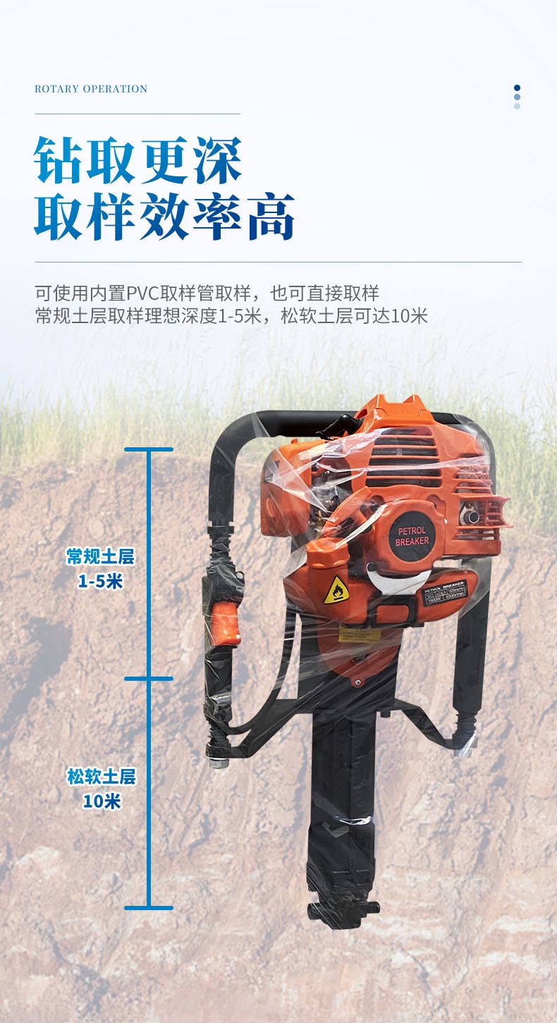 ● 常規(guī)土層取樣理想深度1-5米,松軟土層可達10米!