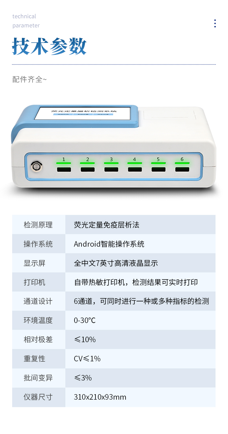 4、檢測(cè)原理:熒光定量免疫層析法;