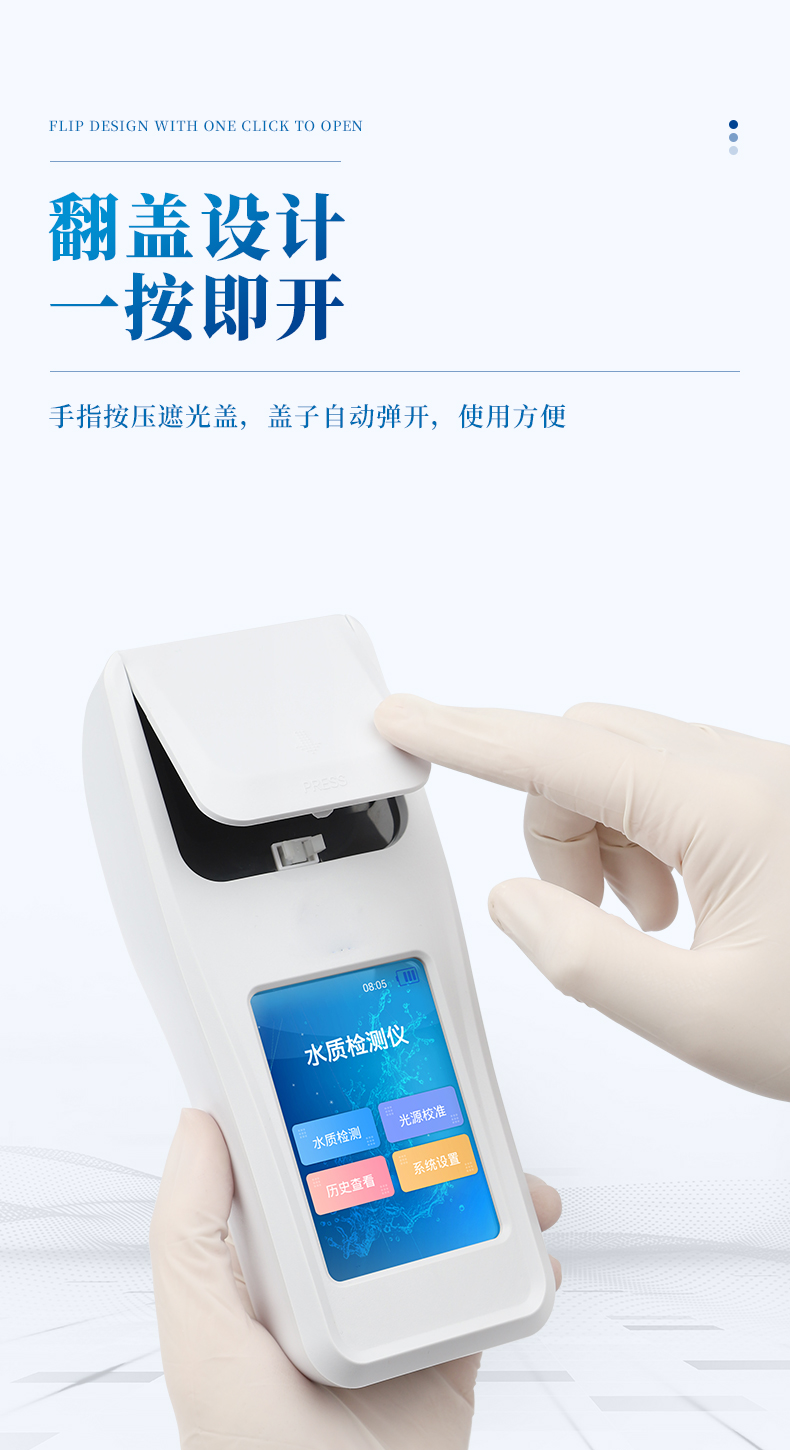 本儀器采用光電比色原理取代傳統(tǒng)的目視比色法。消除了人為誤差,因此測(cè)量分辨率大大提高。測(cè)量時(shí),把被測(cè)水樣放入光電比色池,儀表會(huì)直接讀取數(shù)據(jù)。
