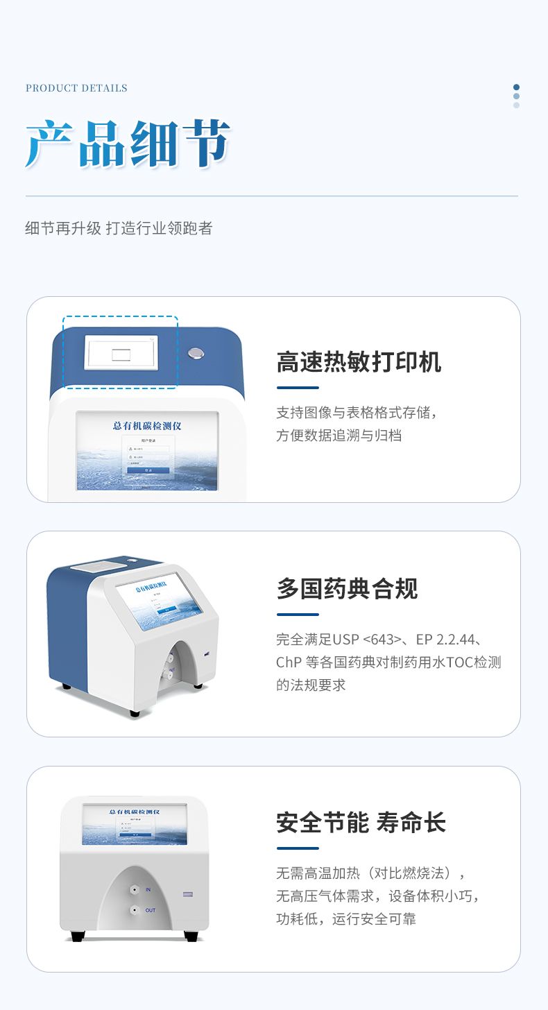 1、檢測制藥工業(yè)中純化水、注射用水和高純水中總有機(jī)碳的濃度;