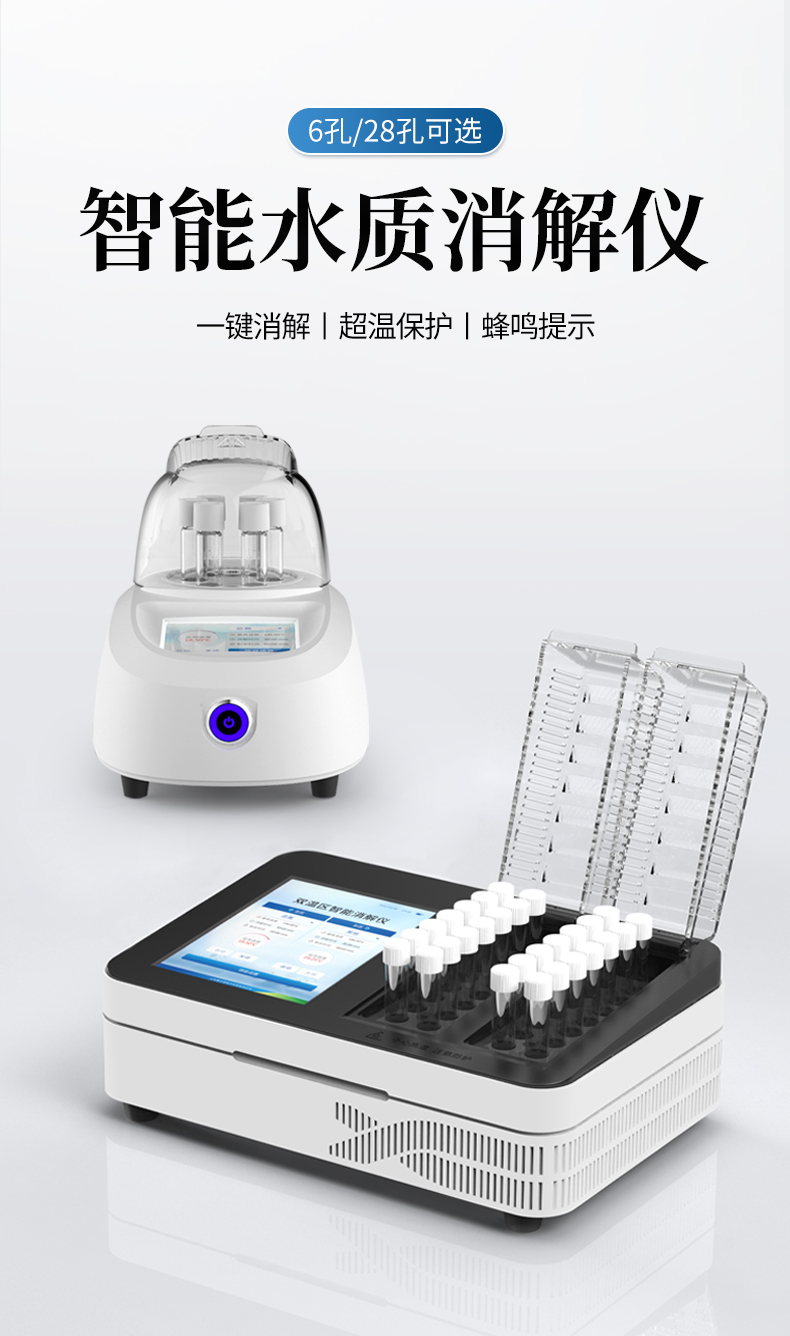 YP-X28型智能雙溫區(qū)消解儀是優(yōu)云譜獨立自主研發(fā)的一款雙溫區(qū)控制消解系統(tǒng),每個溫區(qū)獨立工作,互不干涉,采用智能PID精密算法具有升溫速度快、控溫準確、溫度均勻等特點;適用于水質(zhì)檢測COD、總磷、總氮、總鉻等項目的加熱快速消解。