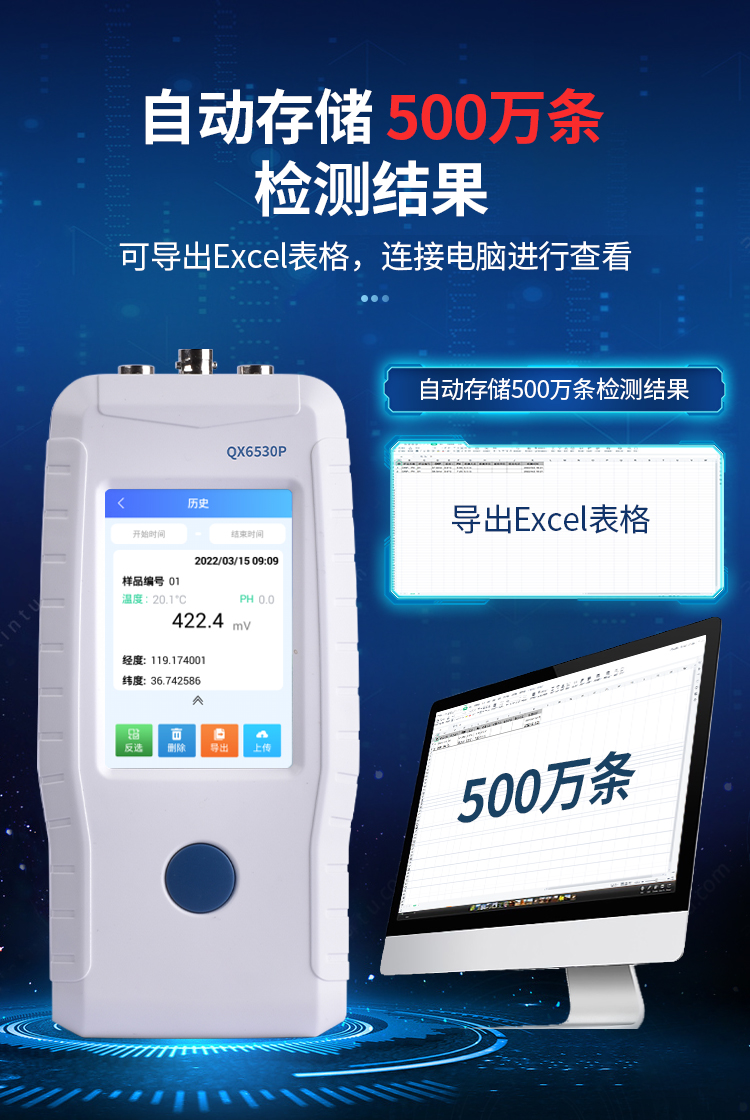 ●檢測(cè)結(jié)果可導(dǎo)出Excel表格,連接電腦進(jìn)行查看。