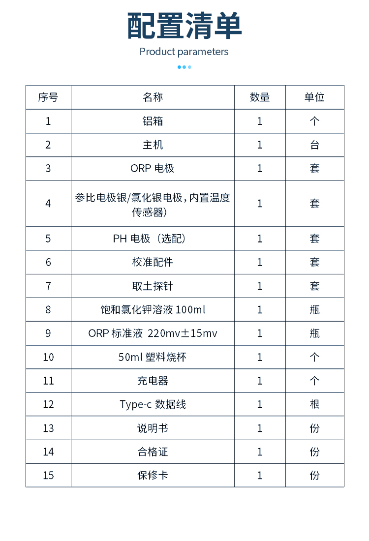 ●配套專用ORP電極、參比電極和不銹鋼空心杄,可直接插入土壤