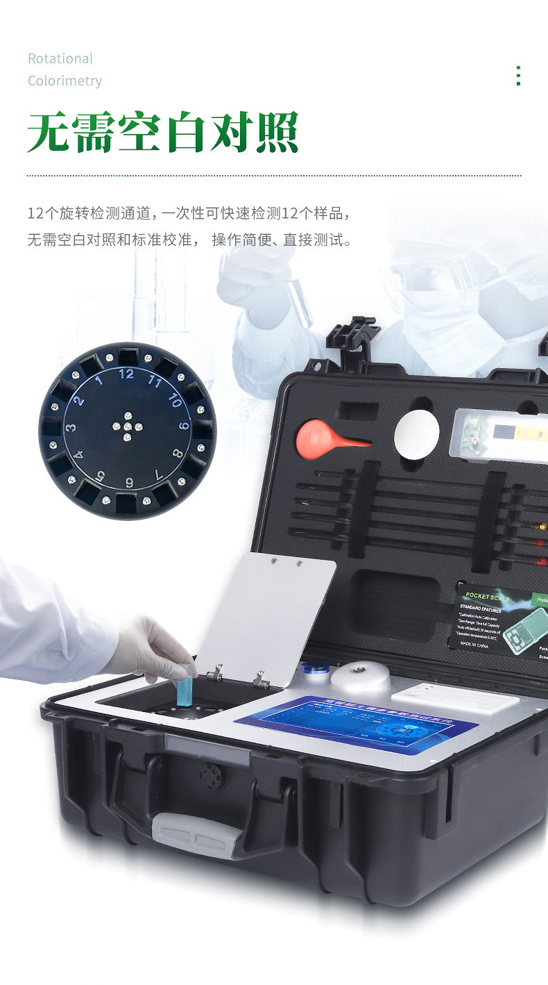 速度快捷:無需空白對照和標(biāo)準(zhǔn)校準(zhǔn),操作簡便、直接測試,配套成品藥劑開瓶即用,無須配置。