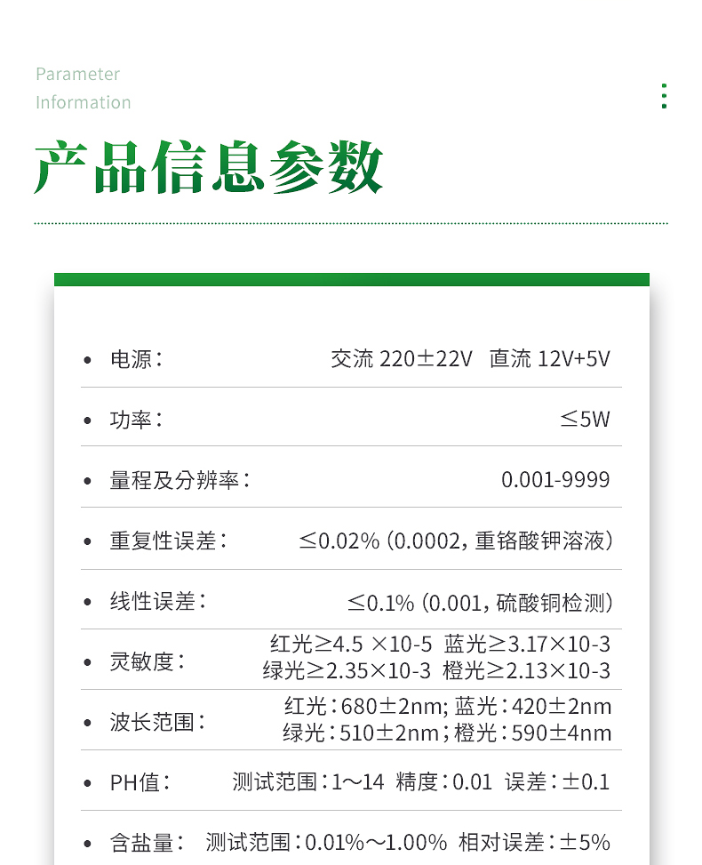 6.線性誤差: ≤0.1%(0.001,硫酸銅檢測)