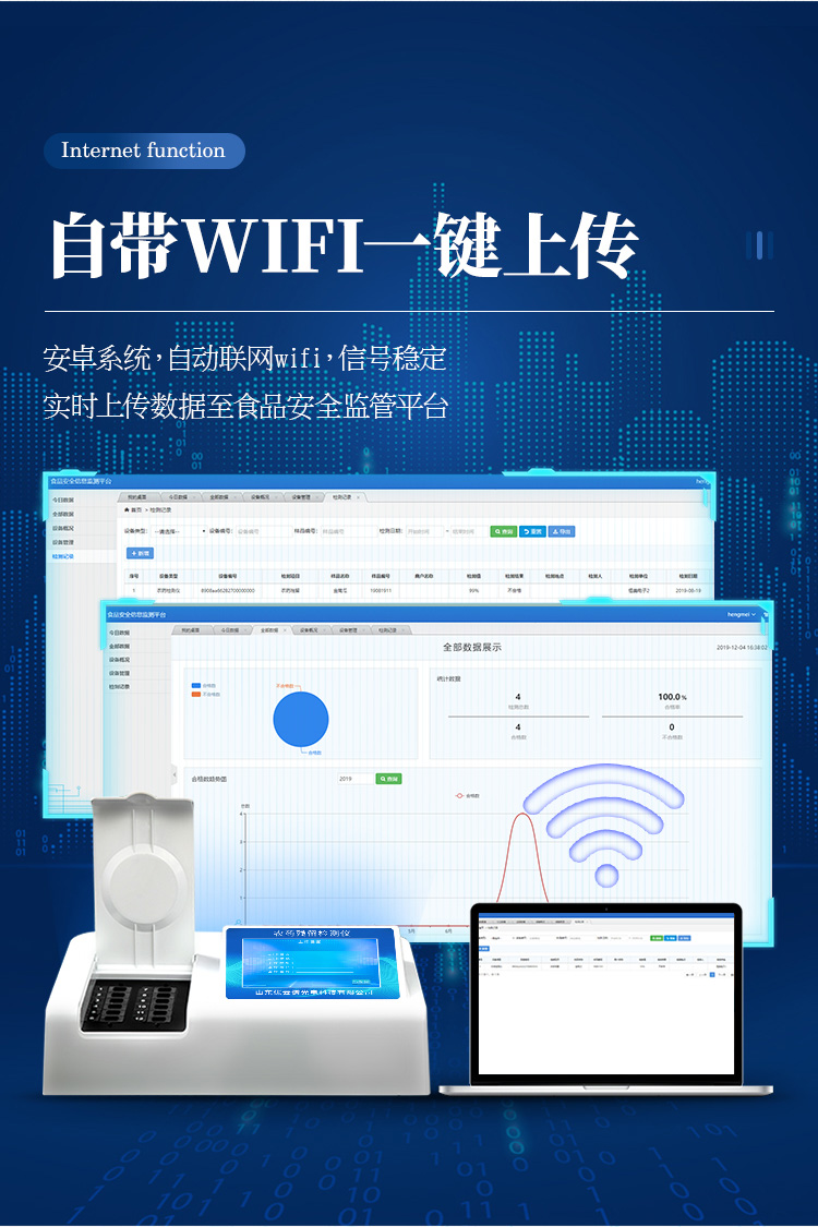 10、儀器具有GPRS遠(yuǎn)傳功能,可插手機卡實現(xiàn)數(shù)據(jù)遠(yuǎn)傳平臺,wifi聯(lián)網(wǎng)功能,可將數(shù)據(jù)快速上傳電腦,進(jìn)行數(shù)據(jù)管理與統(tǒng)計。