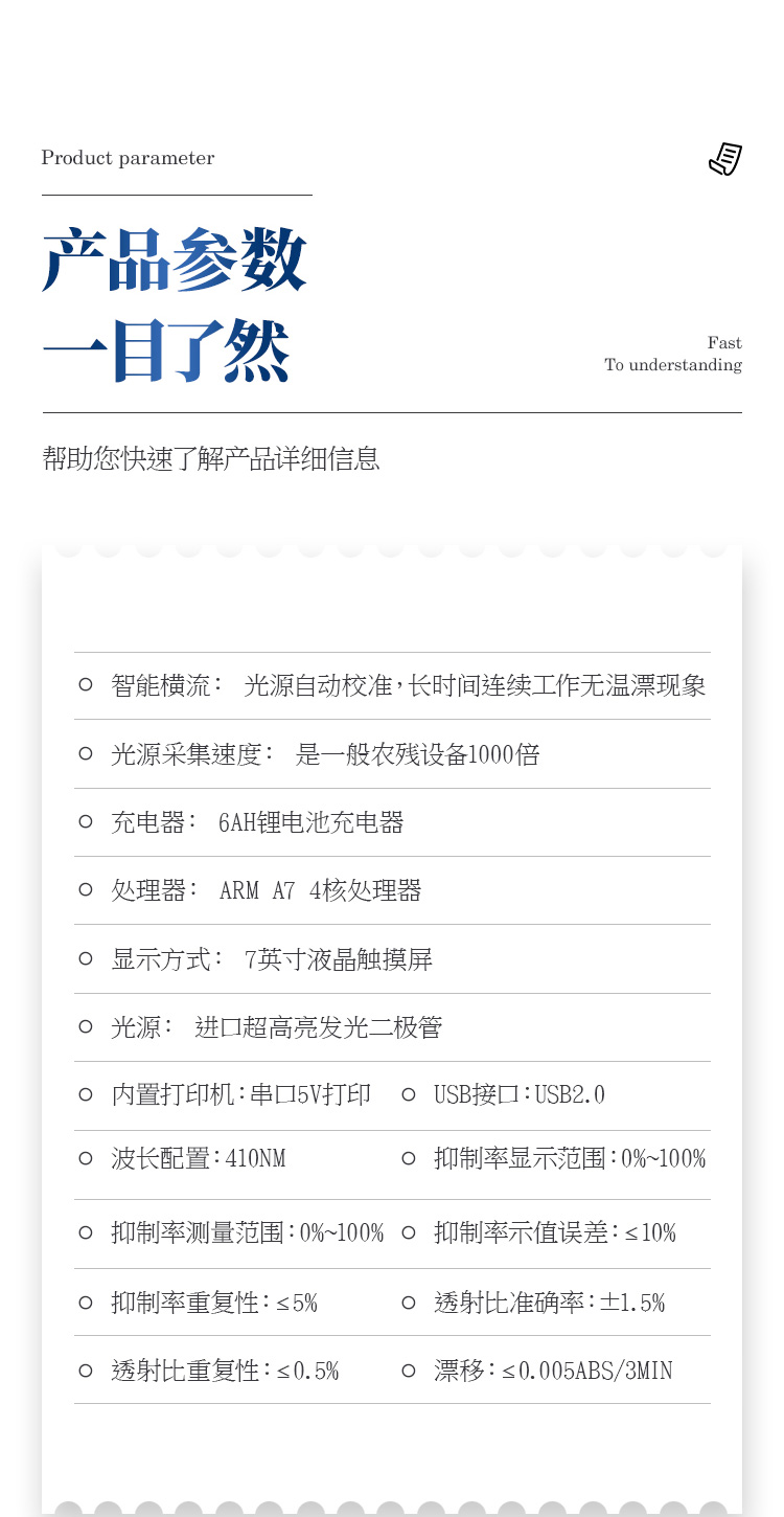 9、智能恒流穩(wěn)壓,光強自動校準(zhǔn),長時間連續(xù)工作光源無溫漂現(xiàn)象。