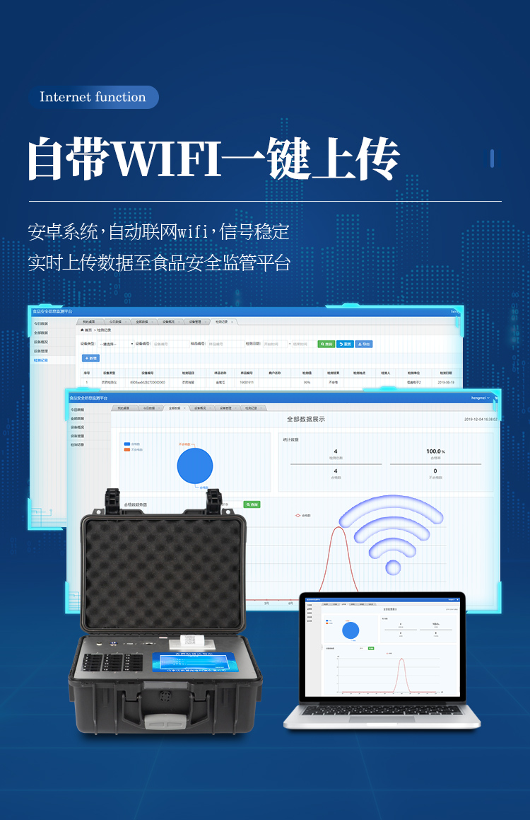 6、儀器具有wifi聯(lián)網(wǎng)功能,可將數(shù)據(jù)快速上傳電腦,進(jìn)行數(shù)據(jù)管理與統(tǒng)計,4G信號GPRS遠(yuǎn)傳功能,可插手機(jī)卡實(shí)現(xiàn)數(shù)據(jù)遠(yuǎn)傳平臺,。