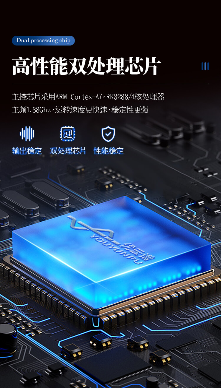 1、主控芯片采用ARM Cortex-A7,RK3288/4核處理器,主頻1.88Ghz,運(yùn)轉(zhuǎn)速度更快速,穩(wěn)定性更強(qiáng)。