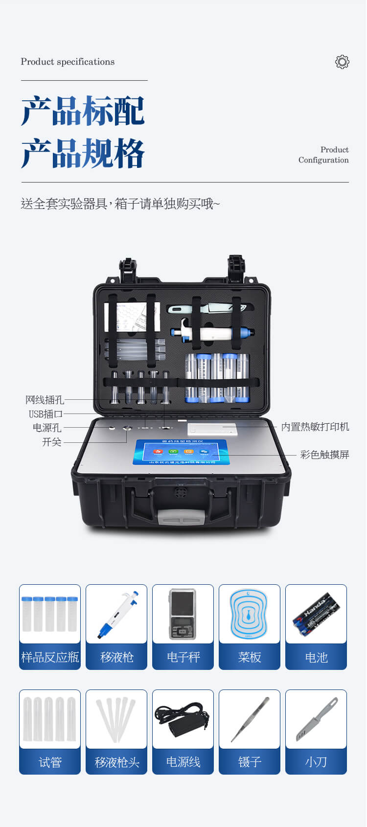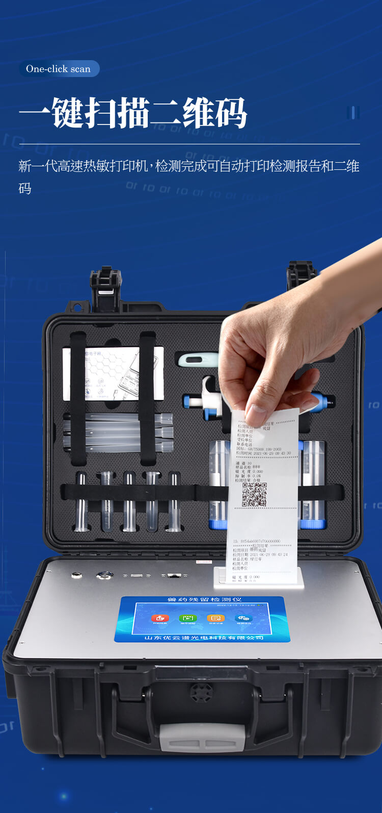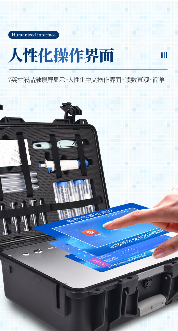 5、一體化便攜式快檢設(shè)備,滿足現(xiàn)場(chǎng)及流動(dòng)檢測(cè)使用需求,能夠在同一軟件下實(shí)現(xiàn)所有檢測(cè)項(xiàng)目的檢測(cè),并可通過同一窗口直觀顯示檢測(cè)結(jié)果。