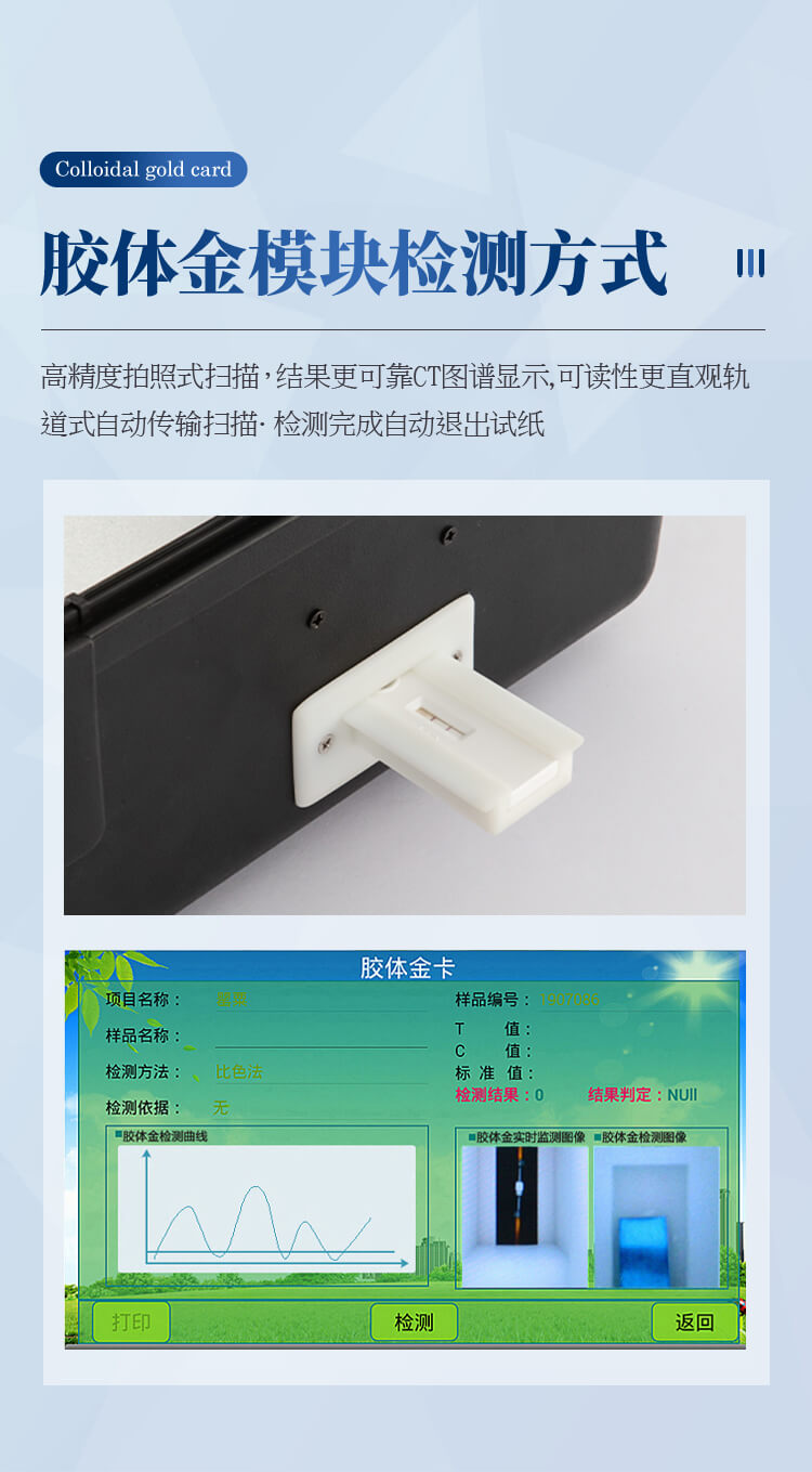 6、膠體金模塊檢測(cè)方式:軌道式自動(dòng)傳輸掃描,檢測(cè)完成后自動(dòng)退出檢測(cè)卡。