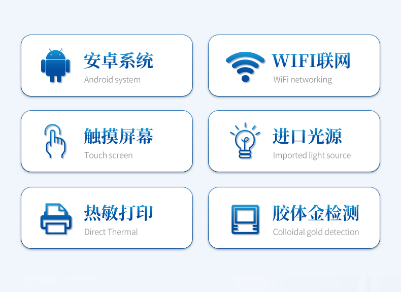 17、兼容市場(chǎng)上所有的膠體金卡,使用耗材不受限制,極大增強(qiáng)用戶使用體驗(yàn)。