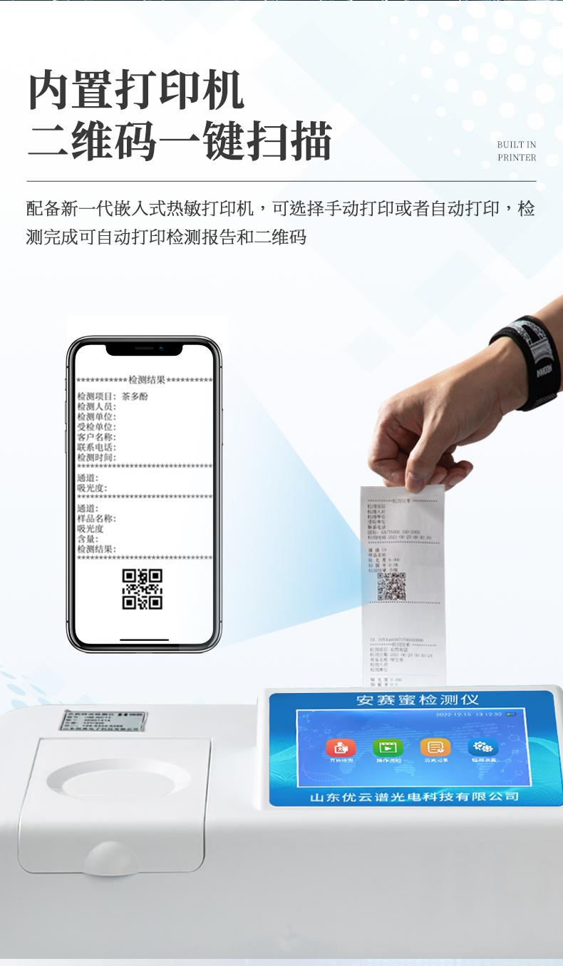 5、配備新一代嵌入式熱敏打印機(jī),可選擇手動(dòng)打印或者自動(dòng)打印,檢測(cè)完成可自動(dòng)打印檢測(cè)報(bào)告和二維碼。