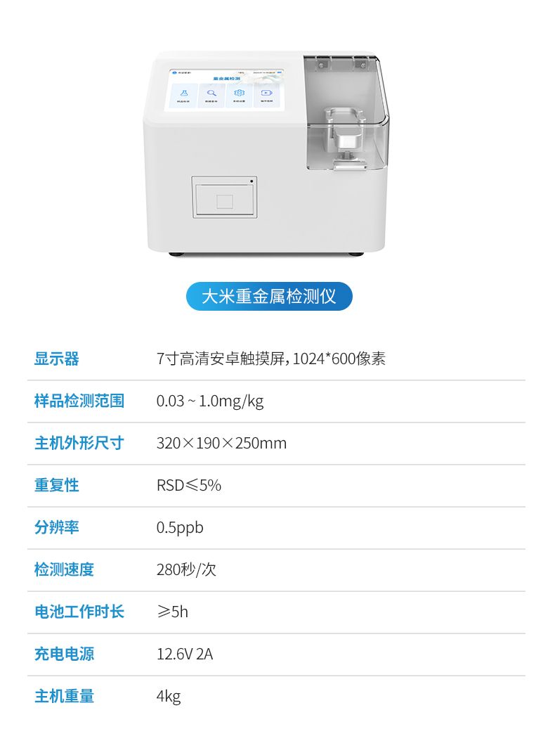 YP-BZ08重金屬檢測(cè)儀可廣泛應(yīng)用于大米、糧谷、果品、蔬菜、藥材、水質(zhì)、水產(chǎn)品中重金屬鉛、鎘、六價(jià)鉻、汞、砷、鐵、鎳、鋁的快速檢測(cè),檢測(cè)項(xiàng)目可根據(jù)客戶的需求定制。