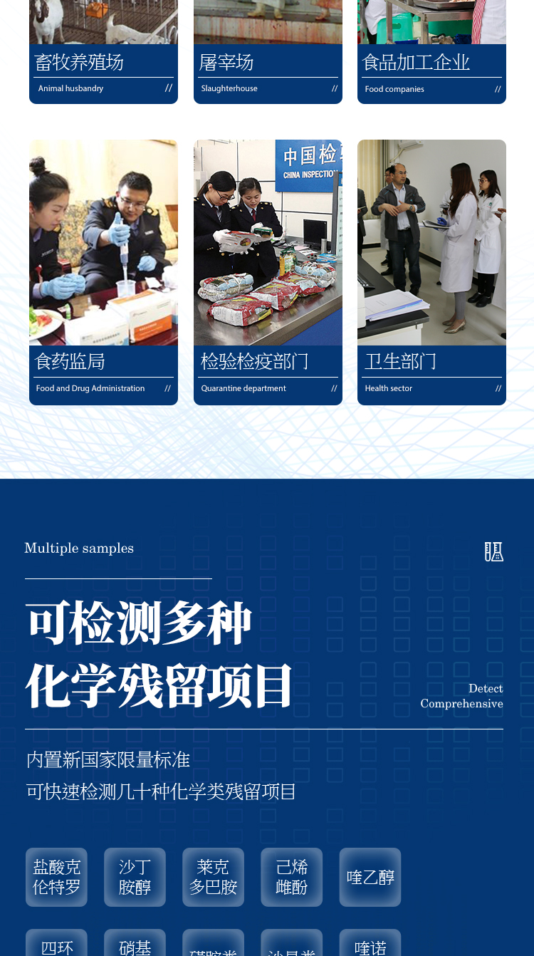 抗生素殘留檢測儀廣泛應(yīng)用于食藥監(jiān)局、衛(wèi)生部門、農(nóng)業(yè)部門、養(yǎng)殖場、屠宰場、食品肉產(chǎn)品深加工企業(yè)、檢驗(yàn)檢疫部門等單位使用。