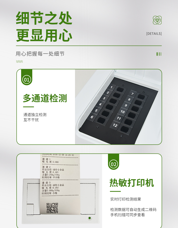 6、配備新一代嵌入式熱敏打印機(jī),可選擇手動(dòng)打印或者自動(dòng)打印,檢測完成可自動(dòng)打印檢測報(bào)告和二維碼。