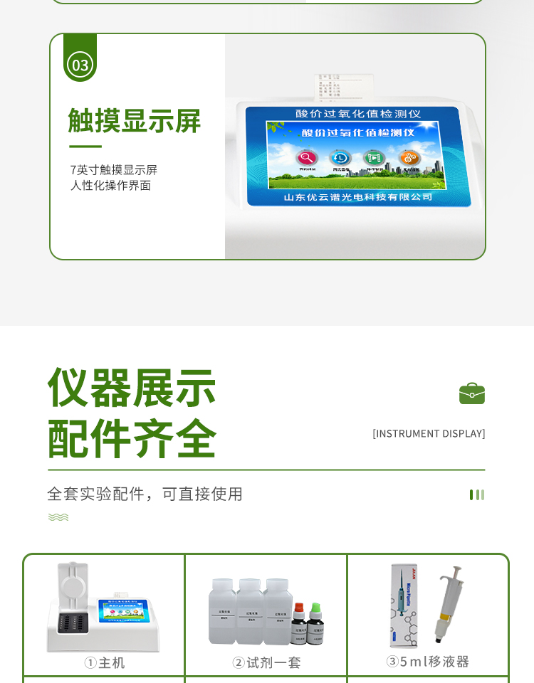 食用油酸價(jià)過氧化值檢測儀為集成化油品快速檢測分析設(shè)備,能夠快速檢測食用植物油、食用豬油、花生油、葵花油、米糠油、食品、肉制品中的酸價(jià)、過氧化值含量;通過檢測可確定植物油是否符合國家標(biāo)準(zhǔn)或是否為酸敗油、劣質(zhì)油、地溝油等。儀器預(yù)留其他項(xiàng)目檢測程序和端口,根據(jù)日后需求可方便的自主增加檢測項(xiàng)目。日后可升級(jí)為檢測水產(chǎn)品、面制品的綜合類型儀器。