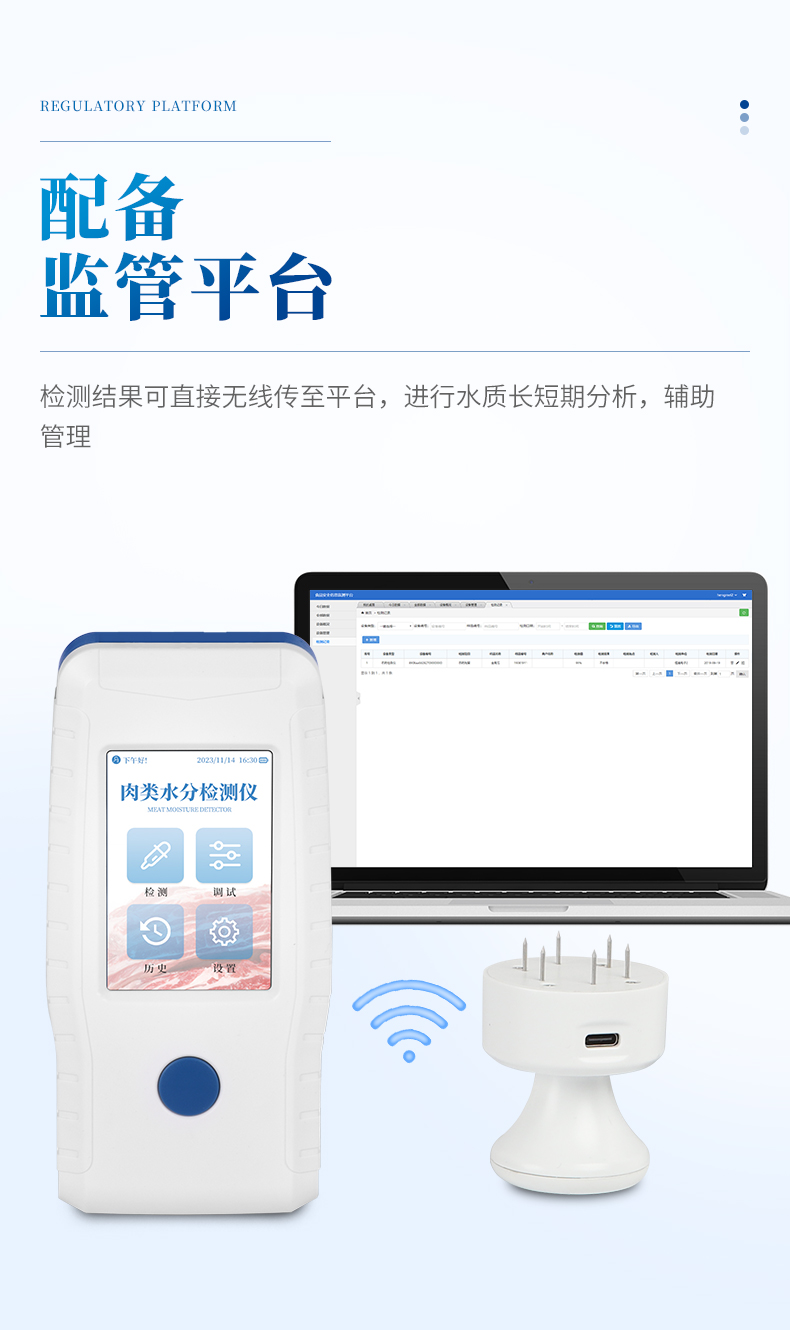 肉類含水量測定儀通過向樣品注入高頻電信號并接收回波測量生肉含水量,相比GB18394-2020國標文件中的5.2節(jié)紅外線干燥法(快速法)更快速便捷,具有不需要制備樣品,檢測迅速,操作方便的優(yōu)點。