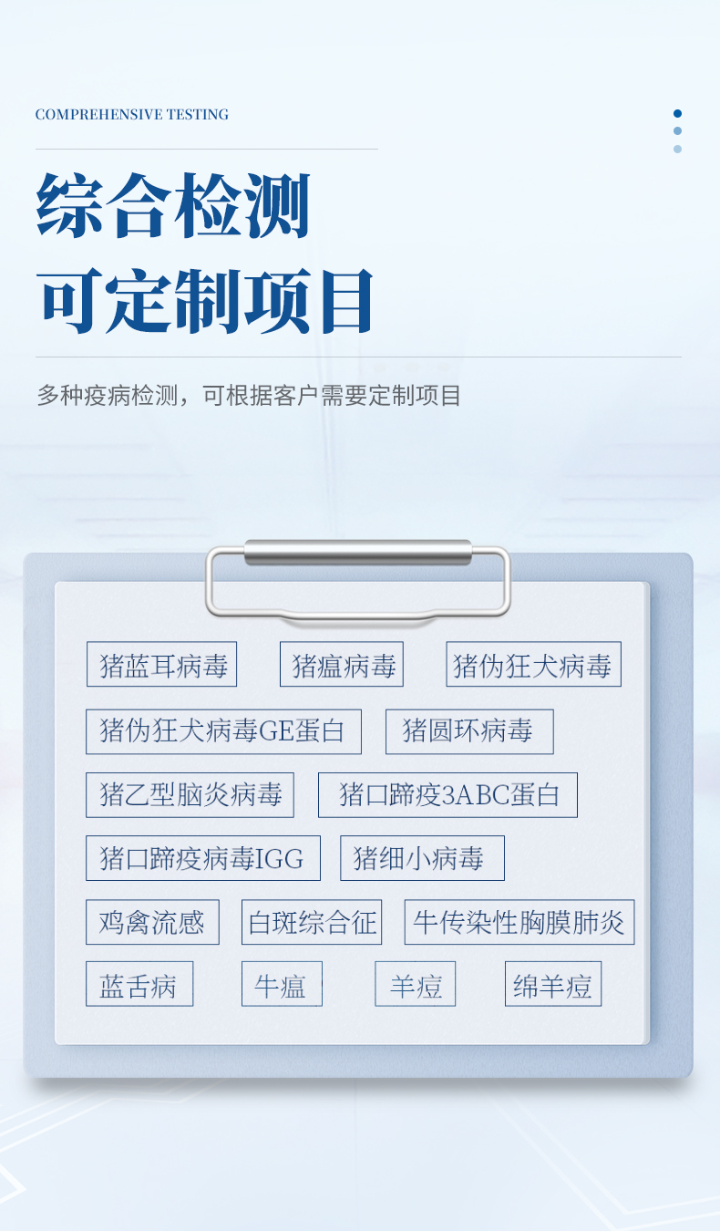 YP-SY96S動物疫病診斷儀是我公司在新推出的一款全新檢測儀器,該系統(tǒng)采用酶聯(lián)免疫吸附測定法與相應試劑配合可定性或定量進行動物疫病快速診斷。如:豬藍耳病毒、豬瘟病毒、豬偽狂犬病毒、豬偽狂犬病毒gE蛋白、豬圓環(huán)病毒、豬乙型腦炎病毒、豬口蹄疫3ABC蛋白、豬口蹄疫病毒IgG、豬細小病毒、雞禽流感、藍舌病、白斑綜合征、牛傳染性胸膜肺炎、牛瘟、綿羊痘和山羊痘等等疫病檢測,并可根據(jù)客戶需要定制項目。