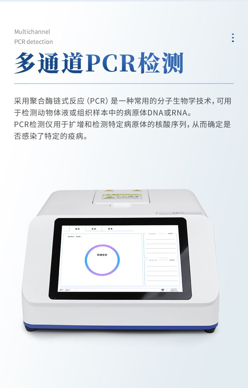 我公司開(kāi)發(fā)的動(dòng)物/寵物疫病檢測(cè)儀采用聚合酶鏈?zhǔn)椒磻?yīng)(PCR)是一種常用的分子生物學(xué)技術(shù),可用于檢測(cè)動(dòng)物體液或組織樣本中的病原體DNA或RNA。PCR檢測(cè)儀用于擴(kuò)增和檢測(cè)特定病原體的核酸序列,從而確定是否感染了特定的疫病。