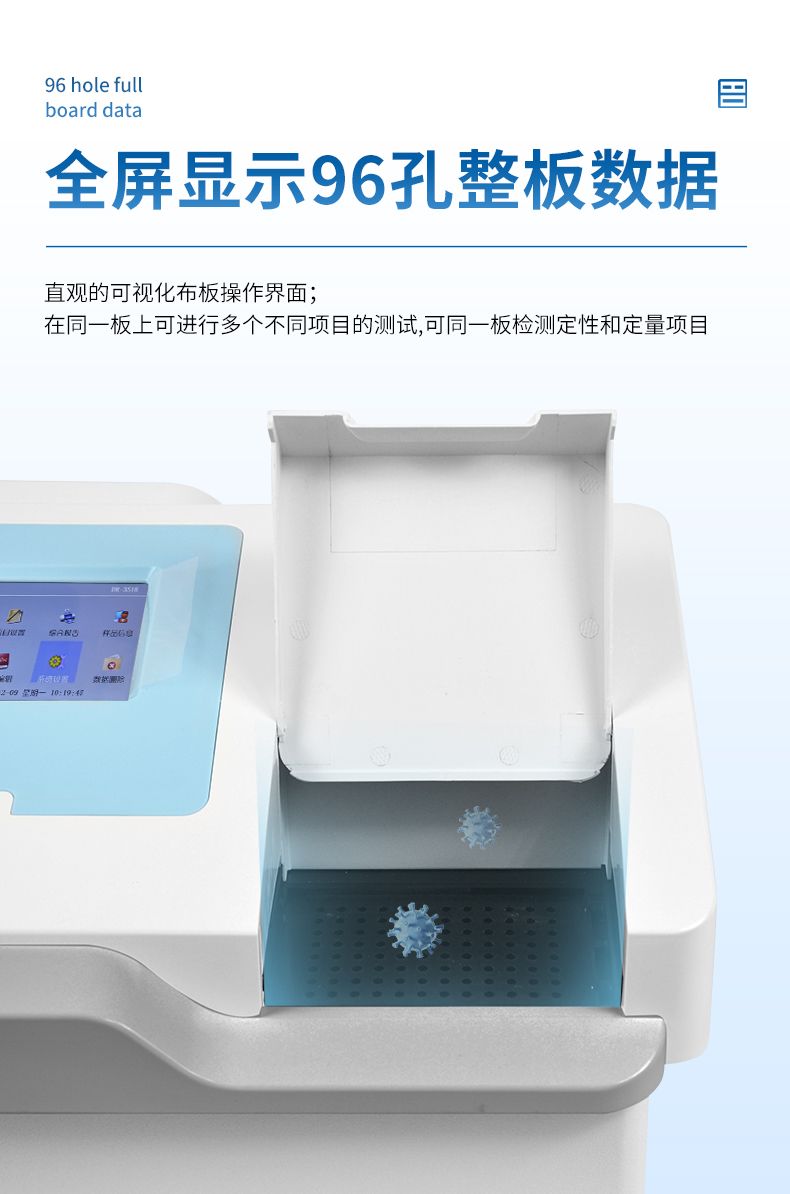 6. 在同一板上可進(jìn)行多至12個(gè)不同項(xiàng)目的測(cè)試,并可同一板檢測(cè)定性和定量項(xiàng)目。