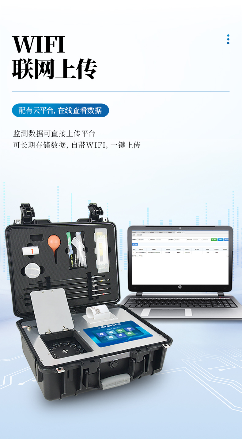 6、儀器標(biāo)配wifi無線上傳、4G聯(lián)網(wǎng)傳輸、GPRS無線遠(yuǎn)傳功能,快速上傳數(shù)據(jù)。