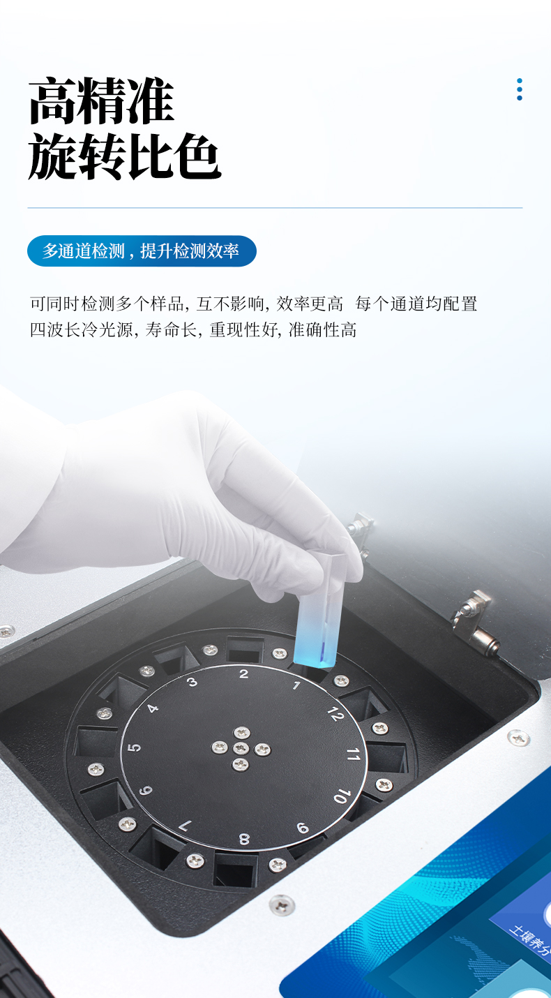 3、8個旋轉(zhuǎn)檢測通道,一次性可快速檢測8個樣品,極大提升檢測效率,降低檢測成本。