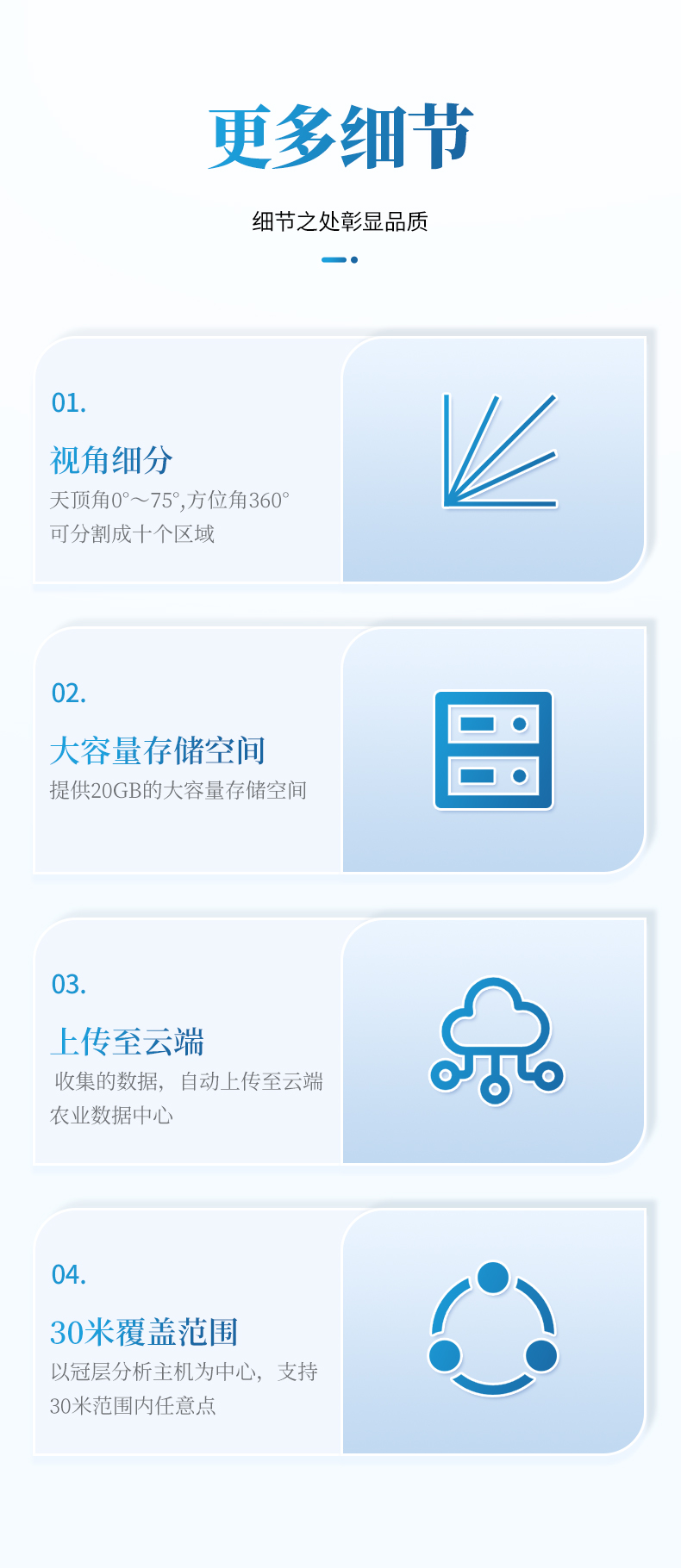 覆蓋區(qū)域: 以冠層分析主機(jī)為中心,支持30米范圍內(nèi)任意點(diǎn)